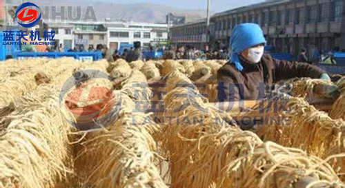 先清除地表,然后搶晴天土壤適應(yīng)時(shí)用釵角鋤從一側(cè)開挖,注意不可從根條挖破挖斷,挖起后清去泥土,符合要求的運(yùn)回加工。新鮮黨參以根條較長,粗1厘米以上,無支根、尾根少、漿氣足、無損傷者為上品。