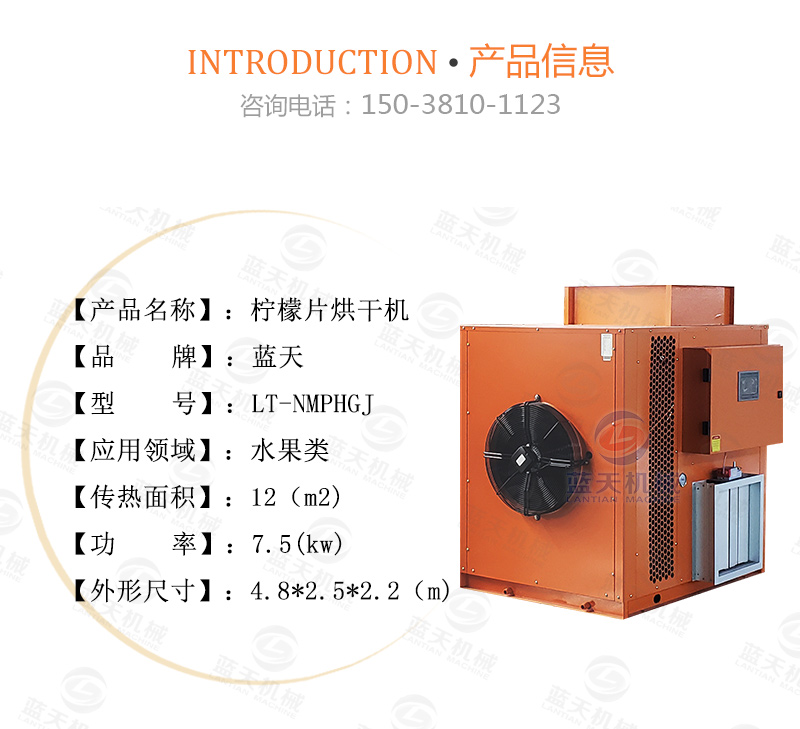 三:將檸檬片整齊的擺放在通風(fēng)的托盤(pán)上,切忌堆疊,先利用自然風(fēng)和光照使檸檬片脫去部分水分。將風(fēng)干24小時(shí)的檸檬片轉(zhuǎn)移到空氣能檸檬烘干機(jī)內(nèi),設(shè)置烘干機(jī)溫度為低溫40-50℃范圍,檸檬片的水分需在低溫干燥的過(guò)程中緩慢蒸發(fā)并排出,烘干過(guò)程約12-13小時(shí)。