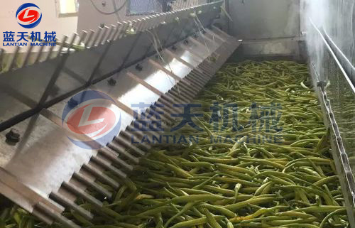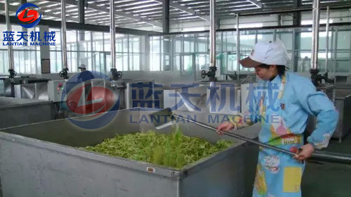 將洗干凈的原料根據(jù)產(chǎn)品要求分別切成片、絲、條等形狀。預(yù)煮時(shí),因原料不同而異,易煮透的放沸水中焯熟,不易煮透的放沸水(水溫一般在150℃以上)中略煮片刻,一般燙漂時(shí)間為2~4分鐘。葉菜類(lèi)最好不燙漂處理。