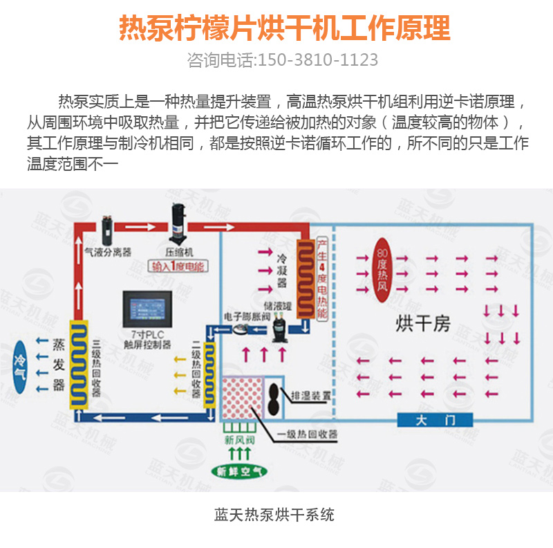 三:將檸檬片整齊的擺放在通風(fēng)的托盤(pán)上,切忌堆疊,先利用自然風(fēng)和光照使檸檬片脫去部分水分。將風(fēng)干24小時(shí)的檸檬片轉(zhuǎn)移到空氣能檸檬烘干機(jī)內(nèi),設(shè)置烘干機(jī)溫度為低溫40-50℃范圍,檸檬片的水分需在低溫干燥的過(guò)程中緩慢蒸發(fā)并排出,烘干過(guò)程約12-13小時(shí)。